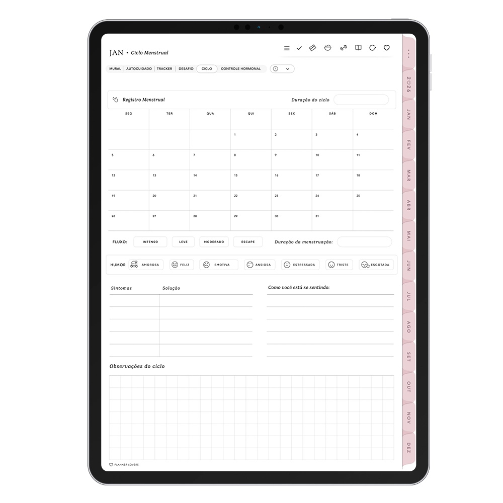 Nosso planner possui design e seções pensadas especialmente para atender às necessidades e à rotina feminina.
